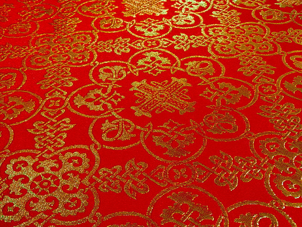 Шовкова тканина церковної тематики - Вифлеем червона з золотом